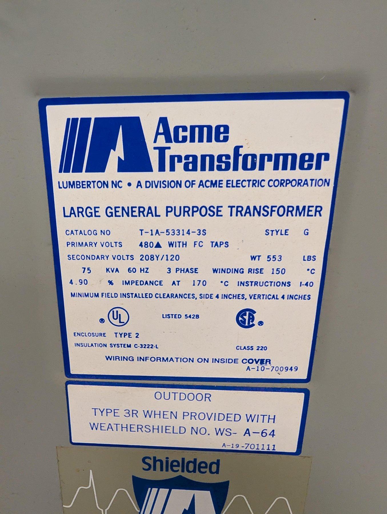 Acme Electric 75 kVA Three Phase General Purpose Transformer – Type 2 Enclosure