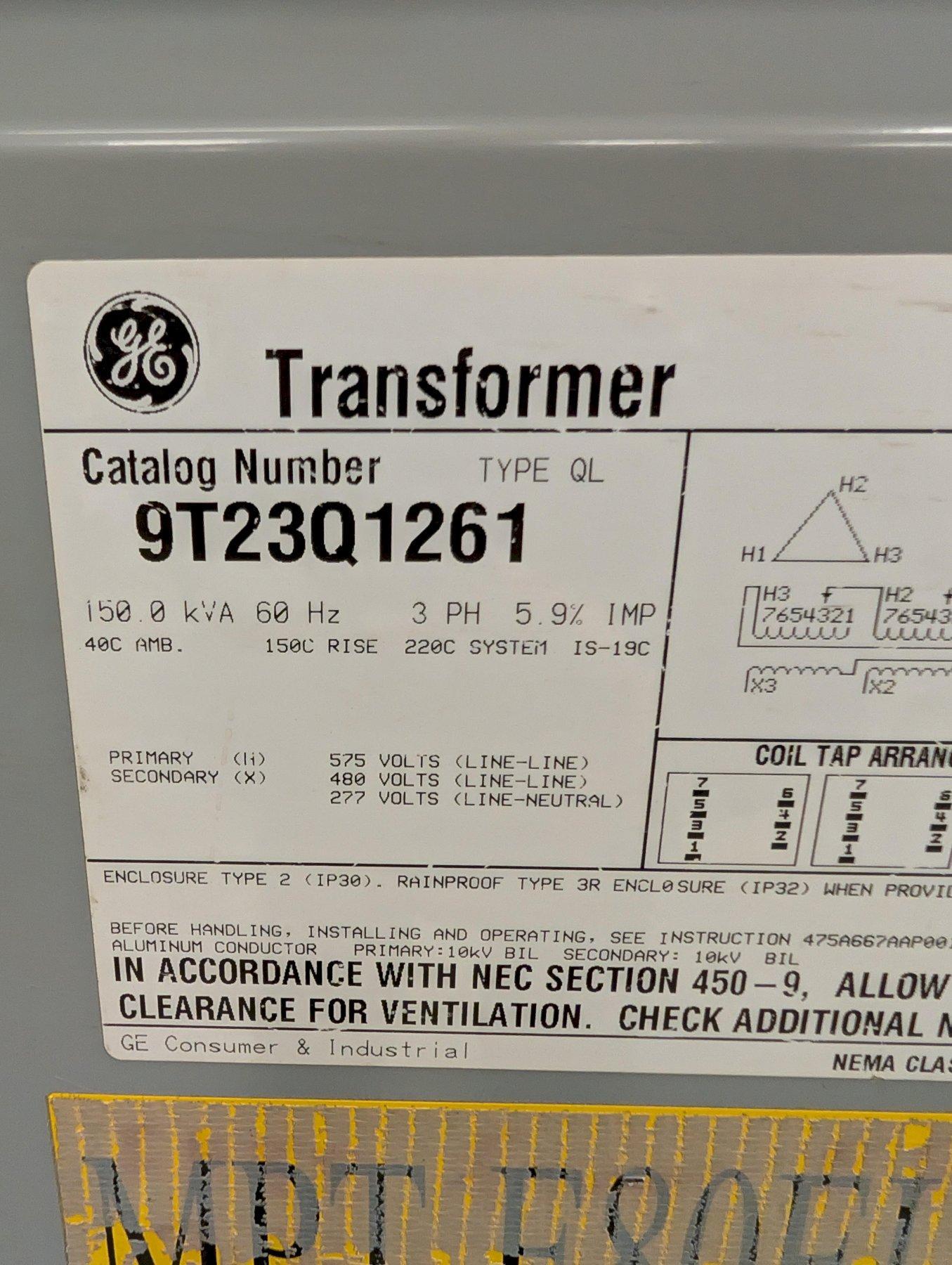 GE 150 kVA Dry Type Transformer – 3 Phase – Type QL