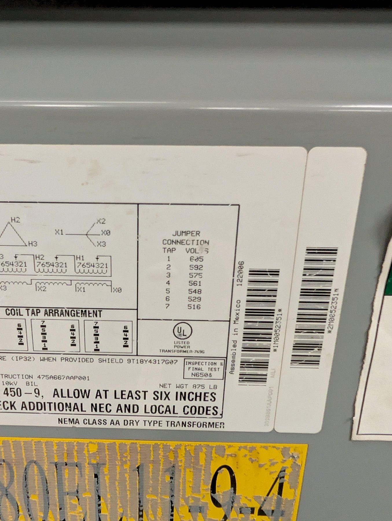 - Tap Settings Available: 516V – 635V (see nameplate)