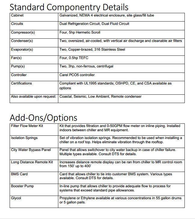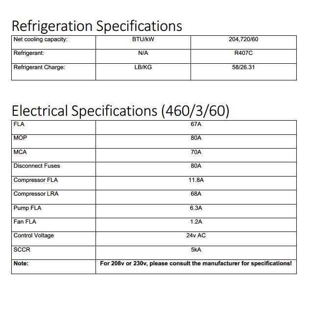 60KW See images in this listing for all the specs on this chiller.