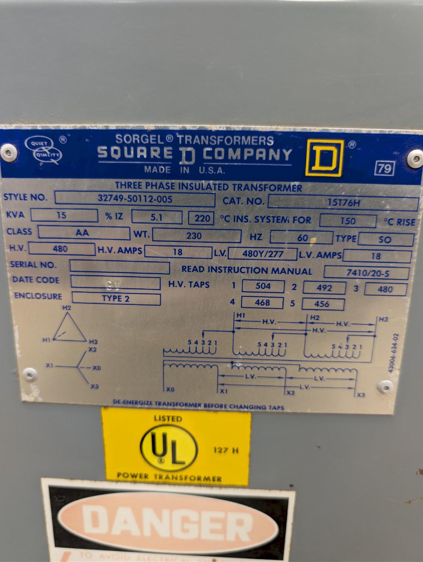 Up for sale is a Square D Sorgel 3-phase transformer, built in the USA and designed for reliable industrial and commercial power distribution. Ideal for stepping or isolating voltage in 480V systems.