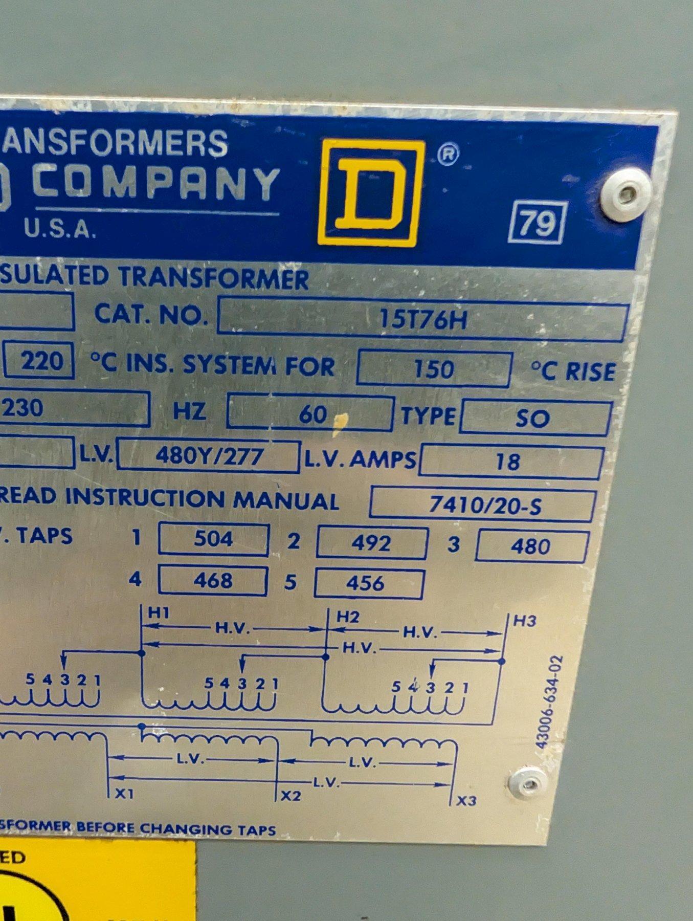 - Secondary Voltage (L.V.): 480Y/277V